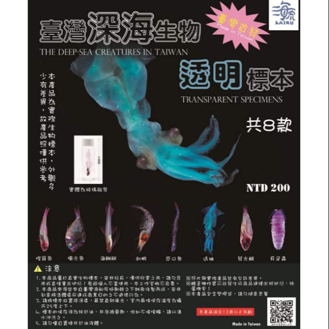 臺灣深海生物透明標本扭蛋魚透明標本 透抽透明標本 刺蝦透明標本