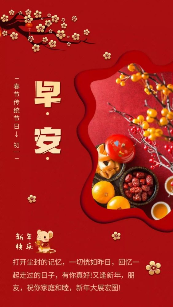 鼠年新年春节大年初一早安图片配图日签 2020鼠年第一天阳光正能量图片